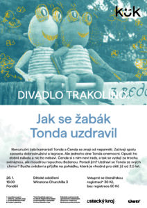 Nerozluční žabí kamarádi Tonda a Čenda se znají od nepaměti. Zažívají spolu spoustu dobrodružství a legrace. Ale jednoho dne Tonda onemocní. Opustí ho dobrá nálada a nic ho nebaví. Čenda si s ním neví rady, a tak se vydají za trochu svéráznou, ale moudrou ropuchou Boženou. Poradí jim? Uzdraví se Tonda ze svých chmur? Buďte zvědaví a přijďte na pohádku, která je vhodná pro děti již od 2,5 let.