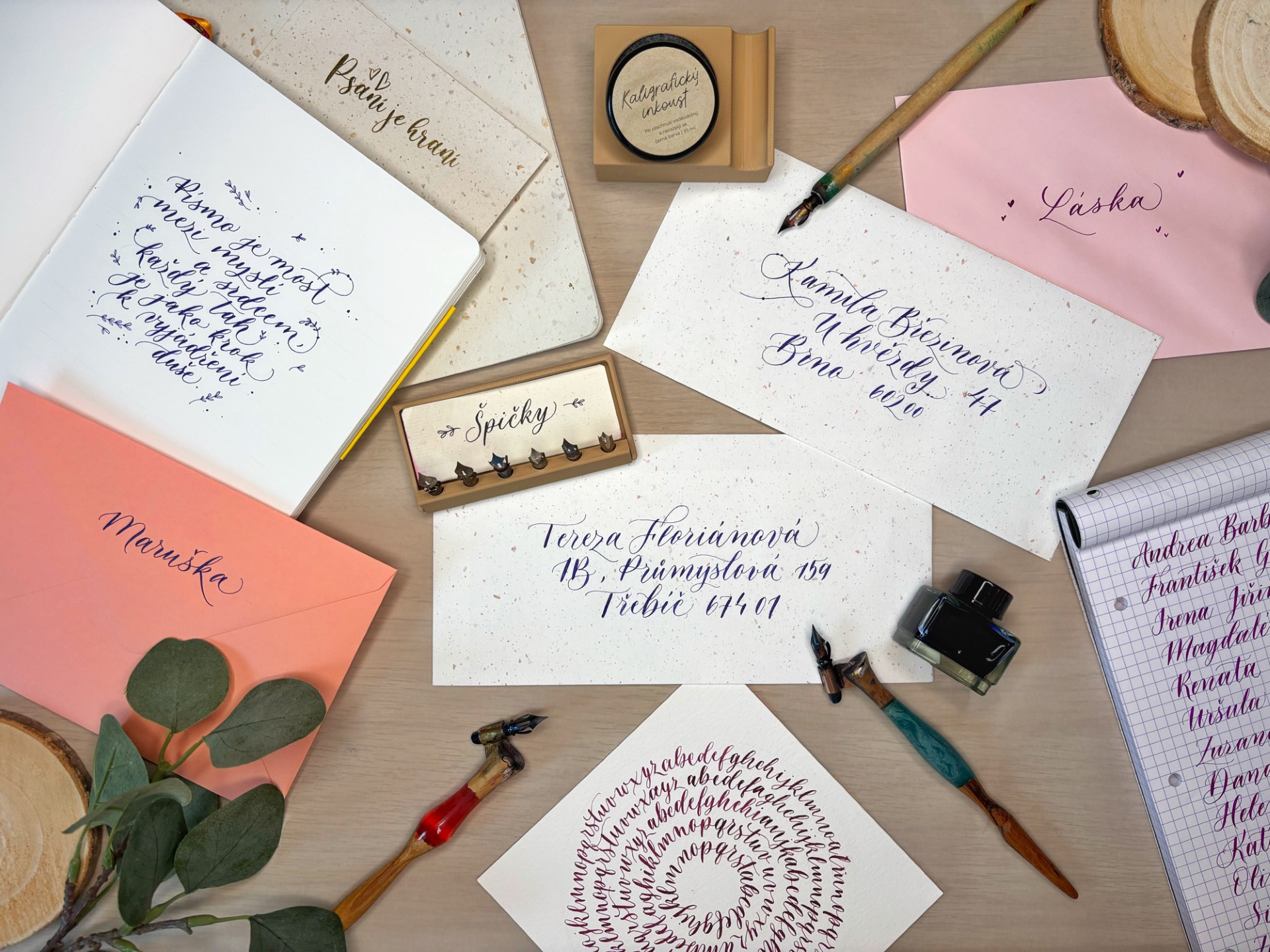 - Možnost vyzkoušet si další kaligrafické potřeby.