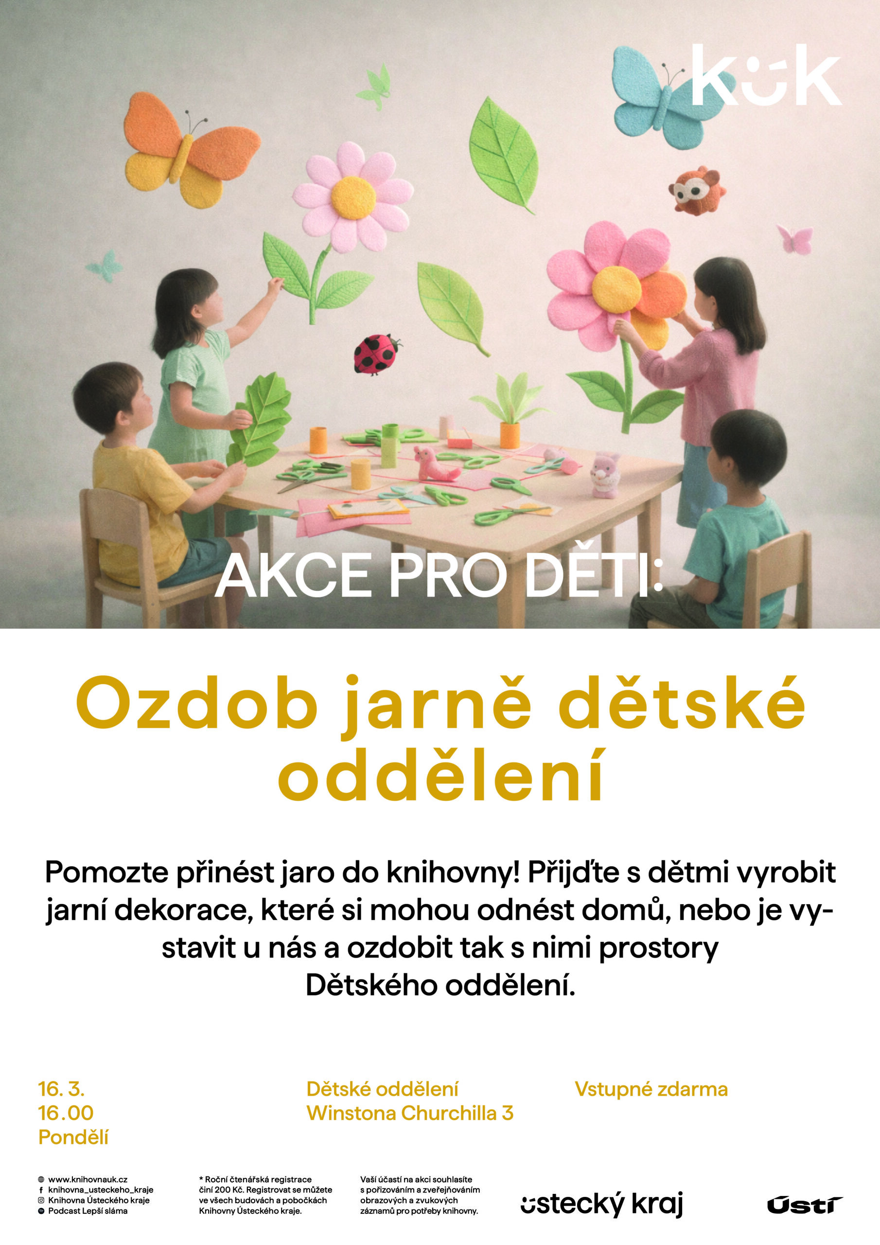 Pomozte přinést jaro do knihovny? Přijďte s dětmi vyrobit jarní dekorace, které si mohou odnést domů, nebo je vystavit u nás a ozdobit tak s nimi prostory Dětského oddělení.