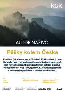 Povídání Petra Nazarova o 76 dní a 2 100 km dlouhé pouti malebnou a rozmanitou příhraniční krajinou naší země, plné nevšedních zážitků, inspirativních setkání a objevování přírodních krás i skrytých koutů. Společná pěší túra s neúnavným parťákem – border kolií Bublinou.