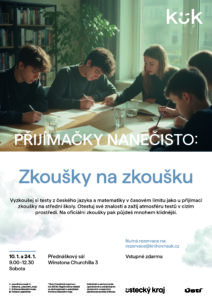 Vyzkoušej si testy z českého jazyka a matematiky v časovém limitu jako u přijímací zkoušky na střední školy. Otestuj své znalosti a zažij si atmosféru testů v cizím prostředí. Na oficiální zkoušky pak půjdeš mnohem klidnější.